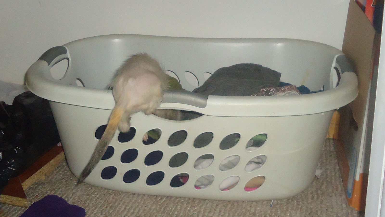 So, wasn't able to take Anya outside the other day, and she was desperate to do something, it was so adorable. She'd stand up on her hind legs, lean against the lower plexiglass partition in their room, stare at me, then move to where she was leaning against my leg, still staring. Back and forth, back and forth. In an effort to reward the cuteness and give her something interesting to do before cage time, I took her upstairs and let her wander my room: